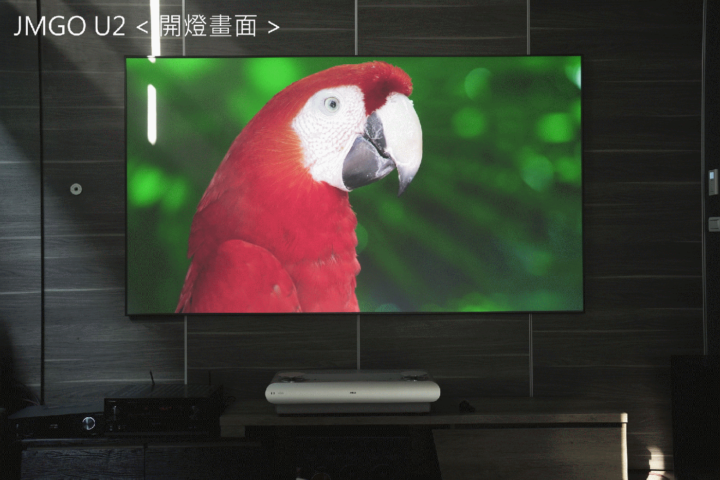JMGO U2,RGB 三雷射光及2400流明,在白天投影呈現極佳的色彩準確度與對比度,也可以依需求投放80-120吋的畫面,固定式倒角錐喇叭設計,能夠將聲音360度反射到各個方向,打造天空環繞立體聲效果,他也有支援3D,輕鬆體驗真實電影場景。